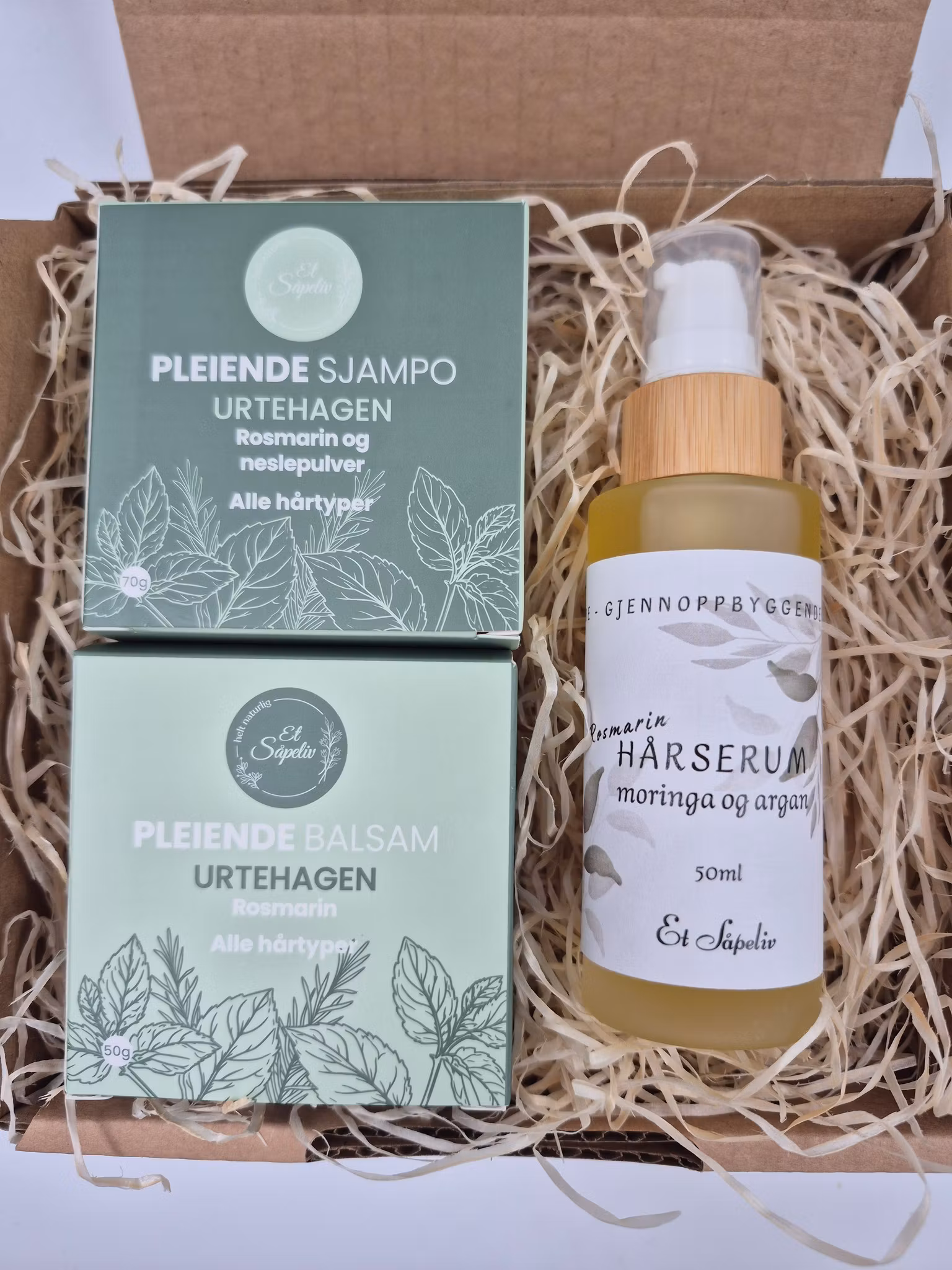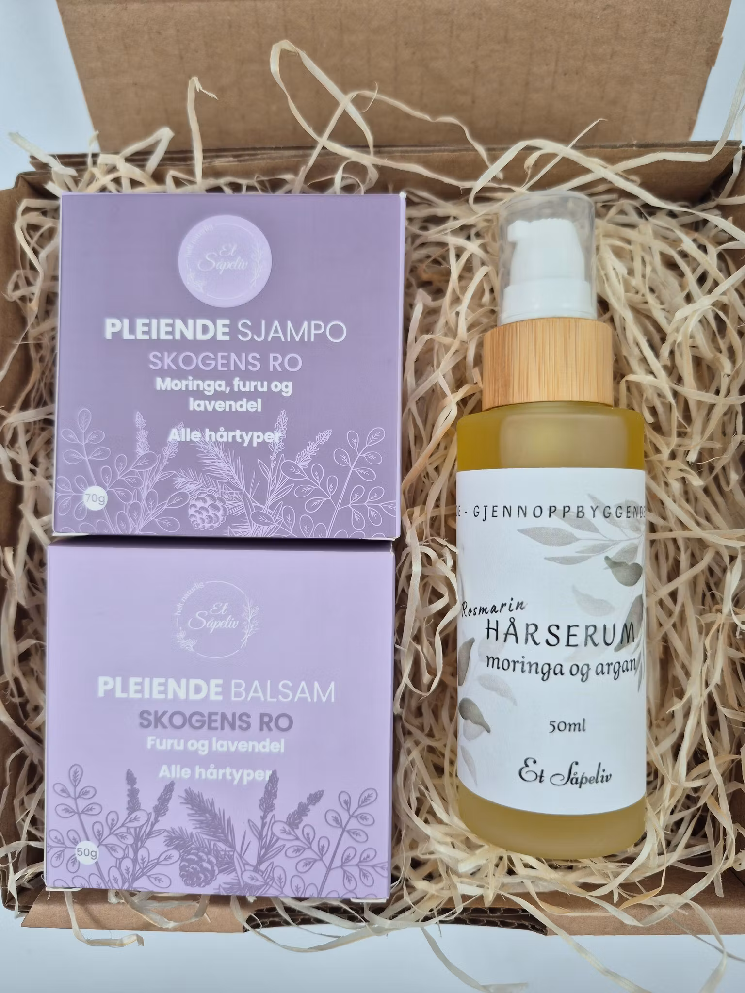 Alle produktene er håndlaget med rene, naturlige ingredienser og passer for alle hårtyper. Gaveesken er ferdigpakket og klar til å gi – en gjennomtenkt gave som gir både velvære og pleie.